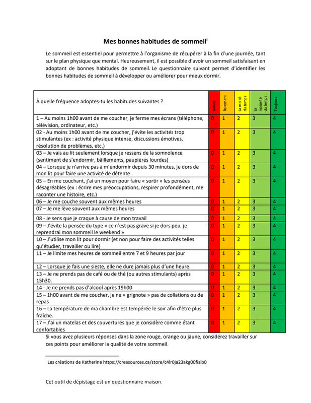 [OUTIL] Mes bonnes habitudes de sommeil |Créasources