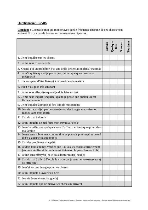 Echelle d'anxiété et de dépression chez l'enfant et l'adolescent.